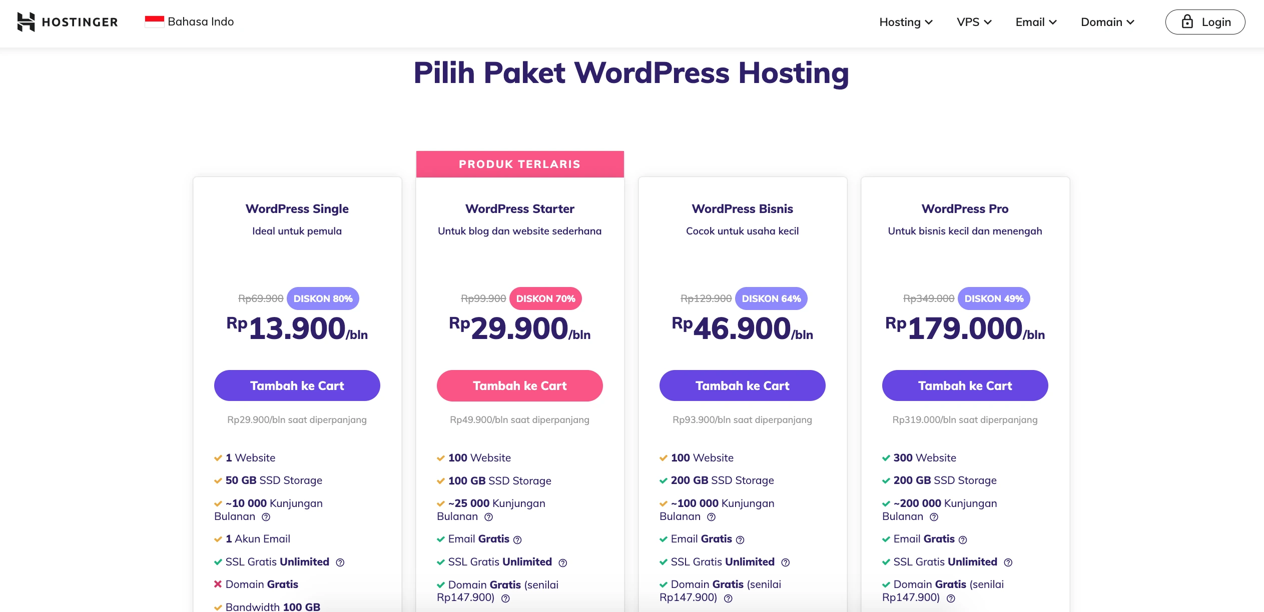 untuk artikel ini, kami akan menggunakan Hostinger. Tetapi Anda harus memilih penyedia hosting yang paling sesuai dengan kebutuhan Anda.