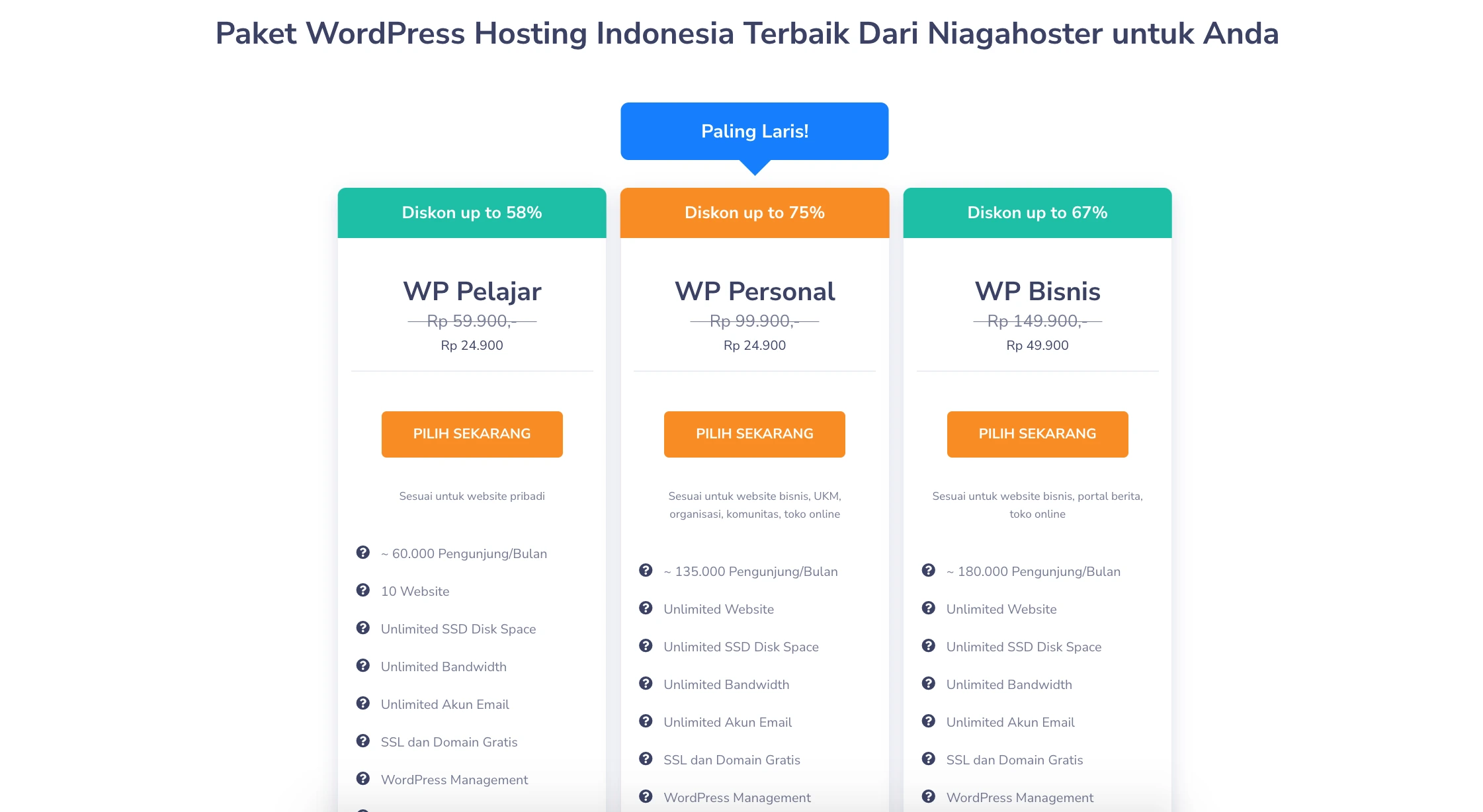 Ada banyak penyedia host web di luar sana, jadi Anda mungkin merasa sedikit kewalahan. Hostinger , Niagahoster , dan DewaWeb adalah pemain top di lapangan. Masing-masing memiliki halaman khusus di mana Anda dapat menemukan lebih banyak informasi tentang solusi WordPress mereka. Jika Anda ingin menjelajahi semua seluk beluk penyedia ini, lihat perbandingan mendalam di antara mereka .