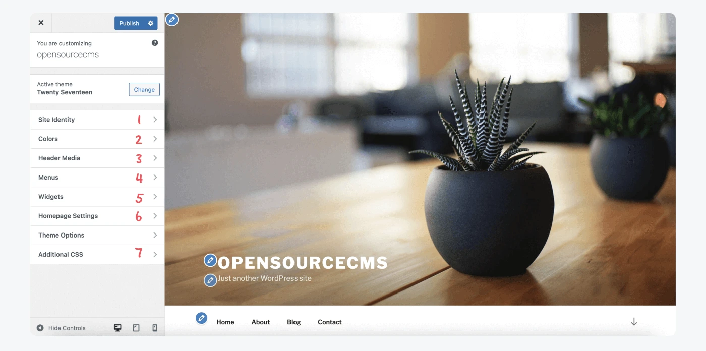 - Additional CSS : Tambahkan kode CSS Anda sendiri untuk lebih menyesuaikan situs Anda.